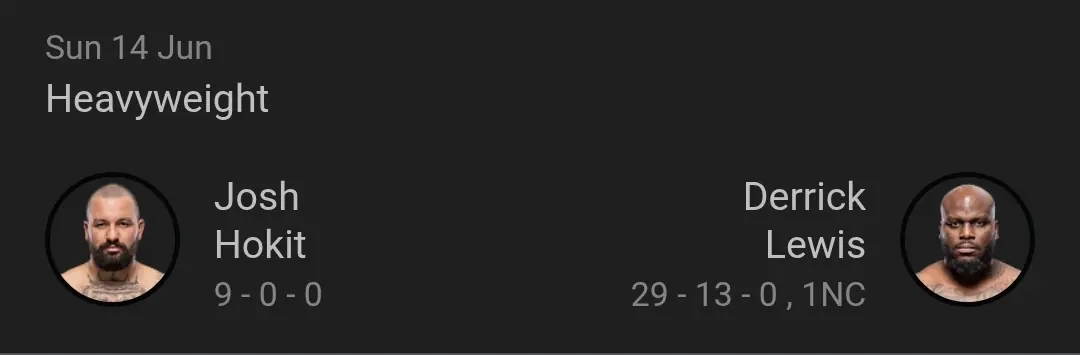 I think this fight will be a great way too start the card but sadly for Lewis. Even tho he's the Presidents favourite fighter I can see him losing. I think Lewis is past his prime and the younger lesser weight man Hokit. Will be too fast and overwhelm Lewis.