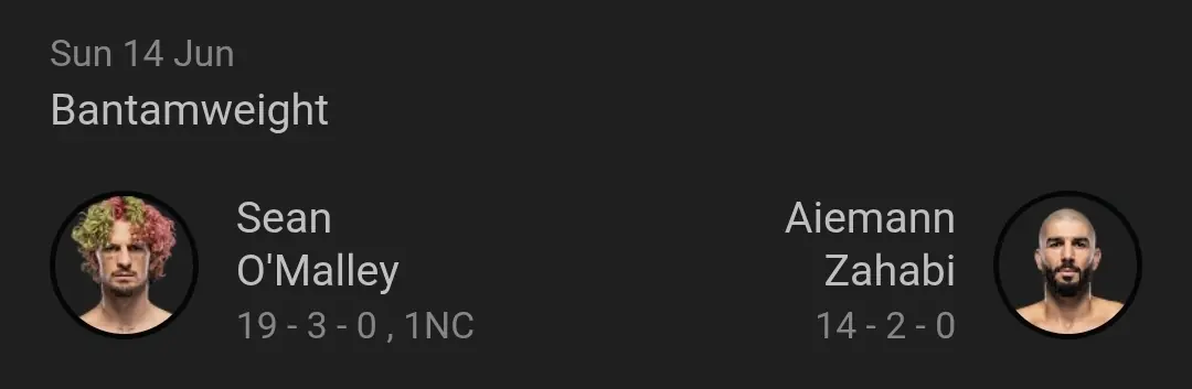 This is a fight I am hoping to Oʻmalley back to his best and be a snipper. I don't know alot about Zahabi so who knows but I expect Sugar to be able too win this fight one way or the other.