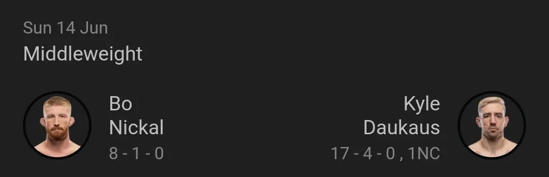 I don't think this match will be the most entertaining on the card. As both fighter are more wrestling based. Nickal has more pedigree and is my pick too win this match up. But damn he isn't arrogant and annoying.